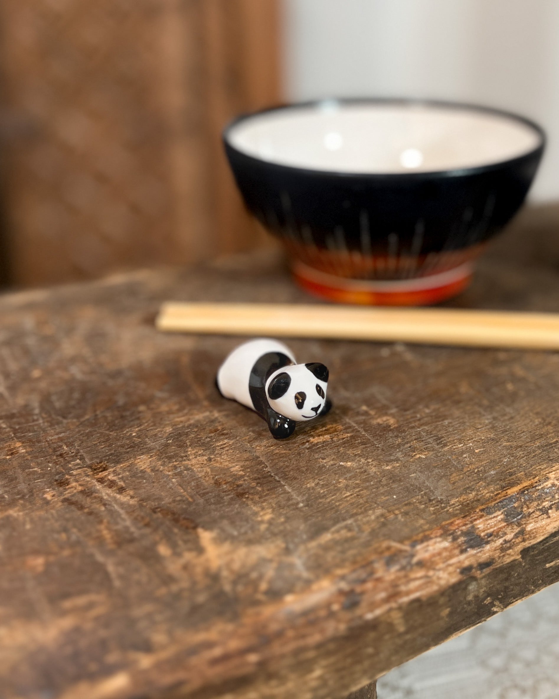 Stöd för ätpinnar, skedar eller en söt dekoration - här presenteras små handskulpterade och handmålade pandor.